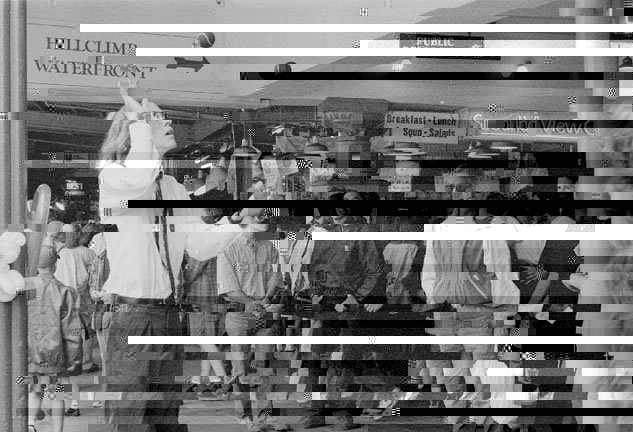 "In 1992, I was hired for the Kid's Alley at the Pike Place Market Festival. I performed a fairly traditional show with diabolo, balls and torches. I started thinking about Pike Place as a busking venue. Pike Place is the place to street perform in Seattle, but its crowded layout and restricted performance spaces rule out traditional juggling shows.